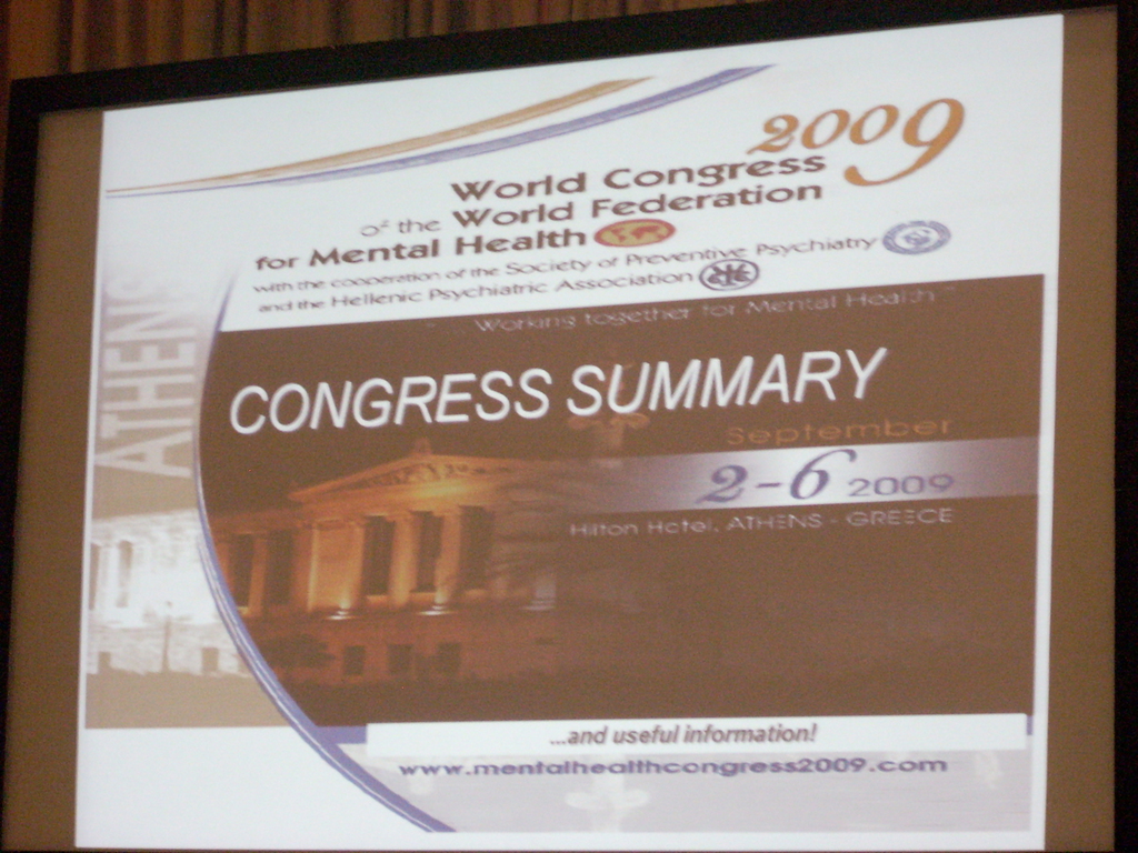 Lastly, we congratulate the Greek based organizing committees for their successful effort in providing us with an informative congress. We encourage the South African committees to further build on this foundation by including consumers/users/survivors in all aspects of planning and workshop selections. We are pivotal in identifying services that enable others gain recovery.